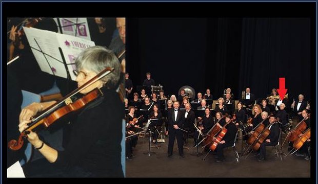 Louise Huntington is one of our founding members and a great source of orchestra history. Playing viola here, she sometimes switches to violin in MSO's small groups that play for community events.